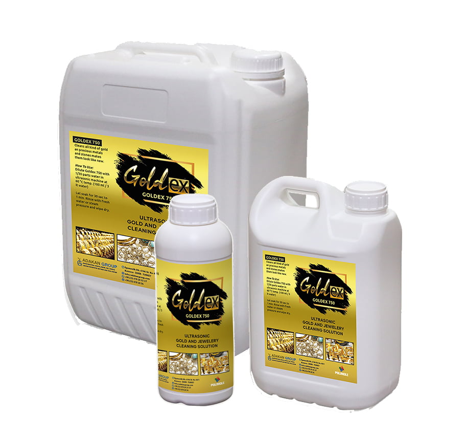 Goldex 750 Kuyumculuk, Saat, Gözlük, Takı sektörü için gerekli olan mükemmel bir ultrasonik yıkama şampuanıdır. Sadece yukarıdaki sektörlerde değil, aynı zamanda tüm hassas metalleri yıkama işlemlerinde güvenle kullanılmaktadır. Konsantre bir üründür. Yıkama suyuna sadece belli ölçülerde Goldex 750 kullanmanız tek başına yeterlidir. Başka bir kimyasal kullanmaya gerek olmadan temizler.